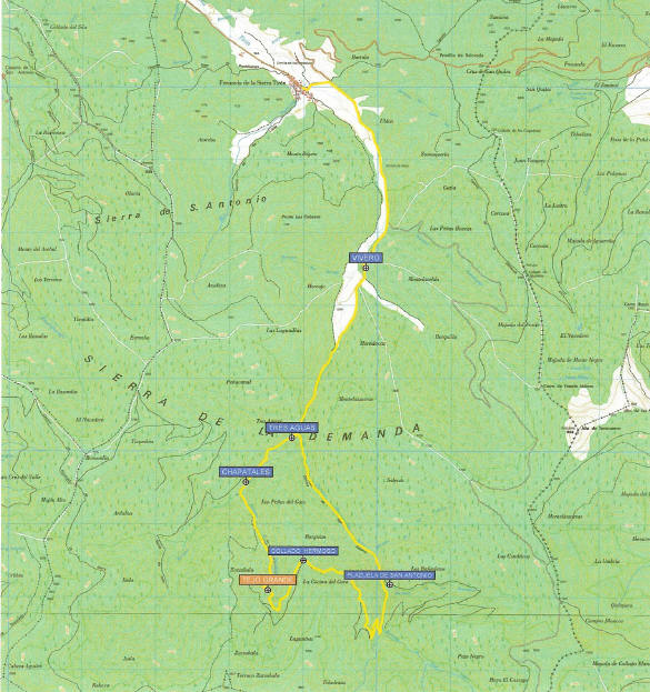 fresnos, pinos y sauces. Debemos caminar 1 kilometro hasta